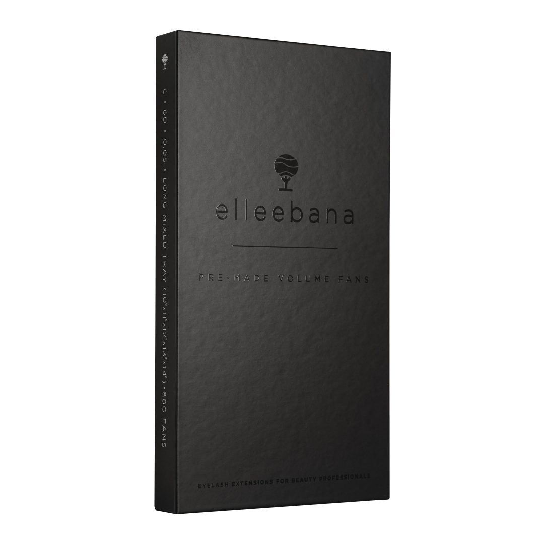 Elleebana Eyelash Extensions are hand-cut, rolled, and heated to set the curl of the lash. The extensions are designed to give more impact than most others can achieve. All lashes are crafted using PBT (a high-quality Korean fiber). Elleebana Eyelash Extensions are jet black with a semi-gloss finish. They pack a more powerful punch than other lash extensions while still looking natural, soft, and fluffy. Mixed trays contain the following rows: 7mm(1), 8mm(2), 9mm(2), 10mm(3), 11mm(2), 12mm(2), 13mm(2).   **If you are interested in L curl lashes please contact us at info@elleebanalashes.com and we will get them to you.